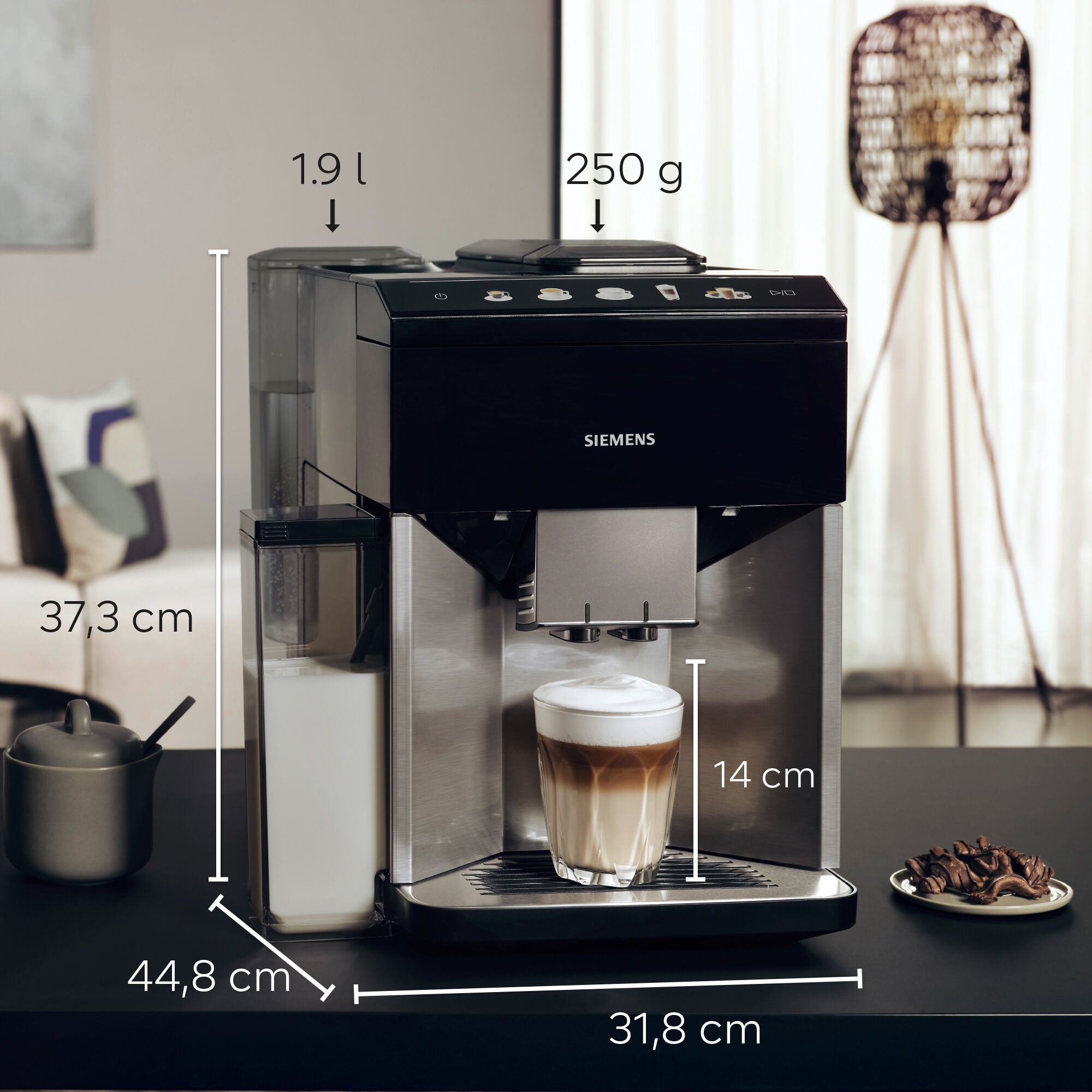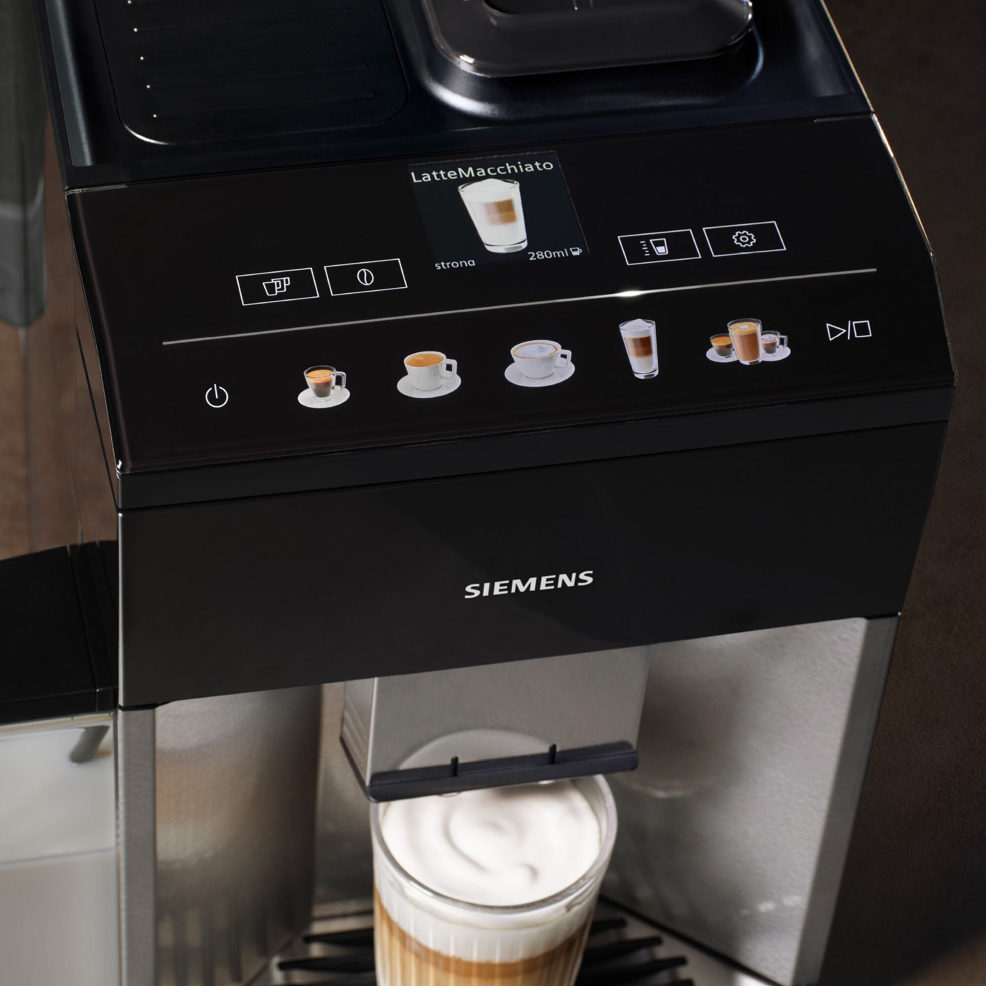 Excellent taste, outstanding design and easy handling. The Siemens EQ500 fully automatic coffee machine with stainless steel front ensures easy and fast preparation of two coffee creations – even for milk-based coffee specialties.