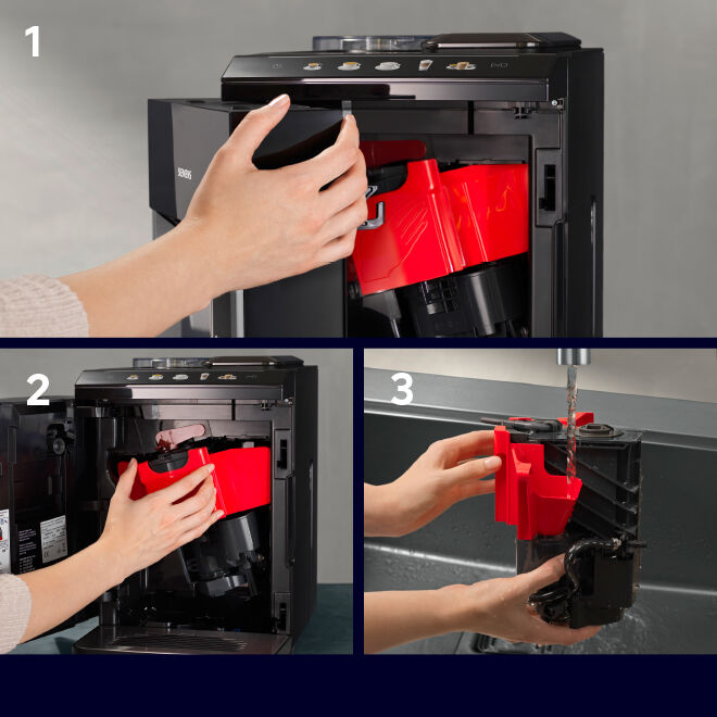 The fully automatic autoMilk Clean steam cleaning function takes complete care of the everyday cleaning of the milk system. You save time and always enjoy a high-quality coffee milk specialty.